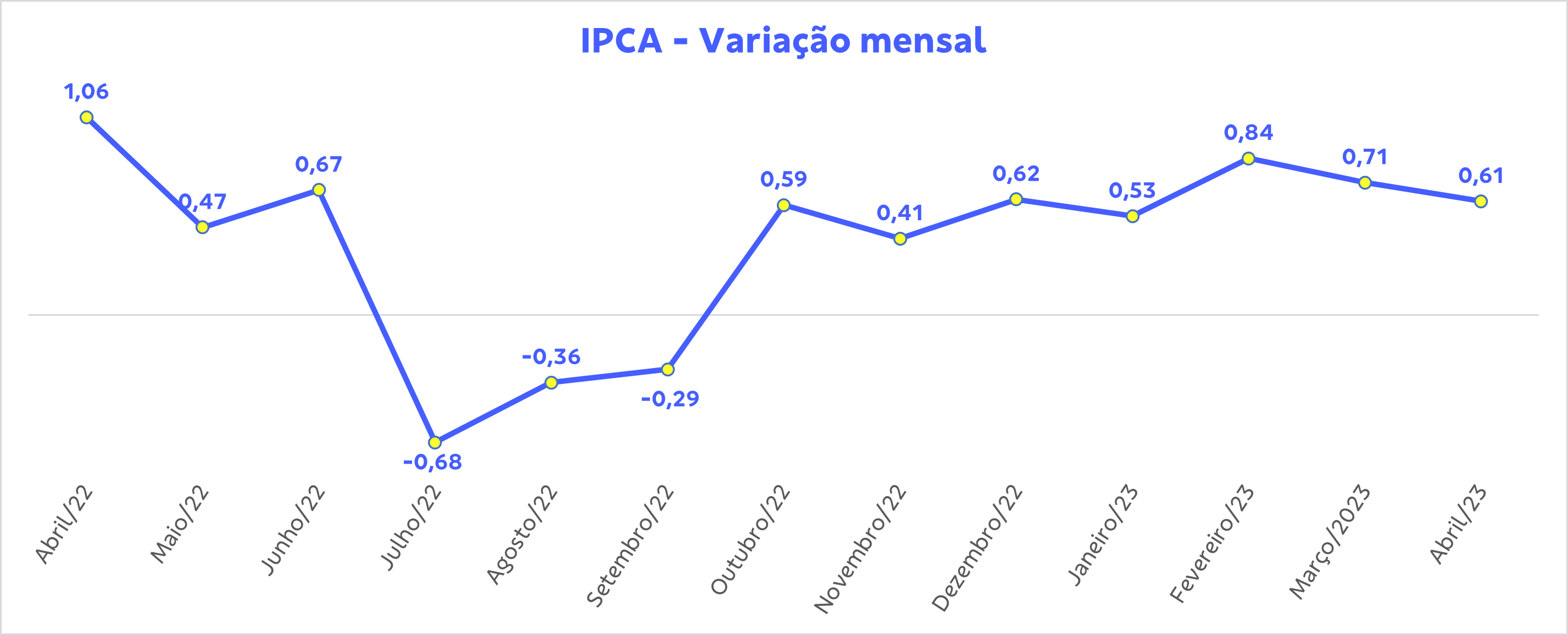 O Índice Nacional de Preços ao Consumidor Amplo (IPCA), considerada a inflação oficial do Brasil, registrou alta de 0,61% em abril, de acordo com informações divulgadas nesta sexta-feira (12) pelo Instituto Brasileiro de Geografia e Estatística (IBGE). O número ficou abaixo do previsto pelo mercado (0,68%) e é menor do que o índice de março (0,71%). Com isso, o país registra uma inflação acumulada de 4,18% em 12 meses e deve seguir abaixo de 5% até junho.
