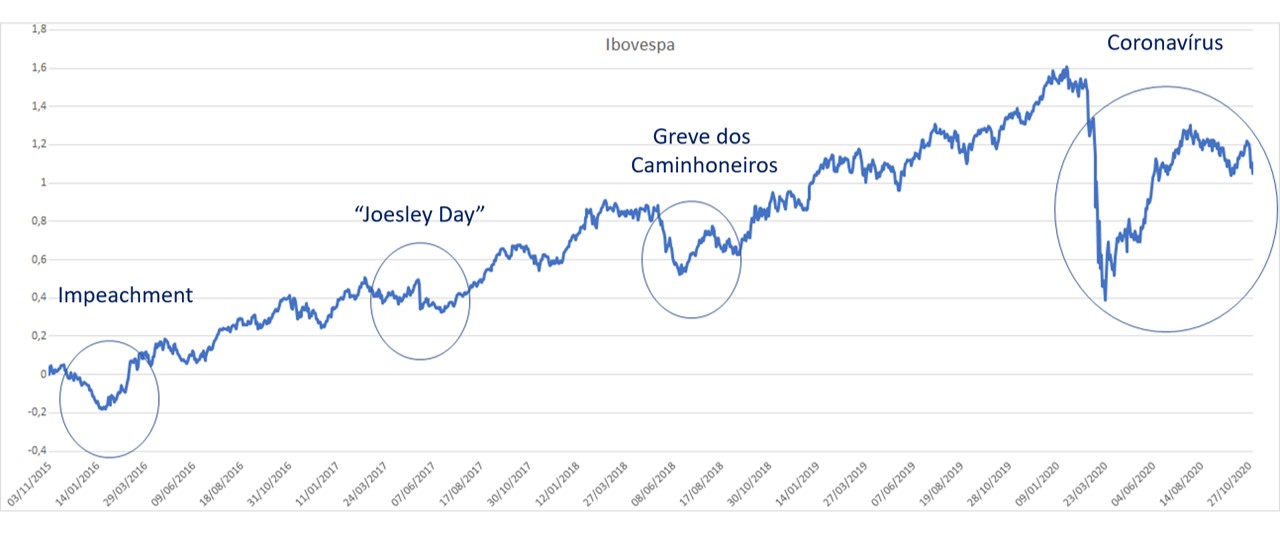 Antes da pandemia do novo coronavírus, passamos por outras crises que também movimentaram o mercado financeiro: foi assim durante o impeachment de 2016, o famoso “Joesley Day”, em 2017, e a Greve dos Caminhoneiros, em 2018.